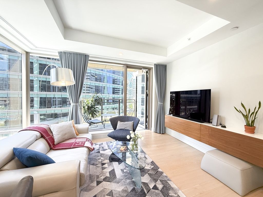 Turnkey CORNER 2BD 2BA, Windowed Kitchen, Private Balcony, Designer Built-Ins, Millwork, Lighting, Motor Shades&Deeded Garage Parking at EchelonSeaport, a Regent Hotel Collection offering 5 Star Living in the heart of Bostons Seaport. This stunning residence, wrapped with floor-to-ceiling windows offers southwestern views overlooking the Waterfall Pool&European-inspired Piazza allowing cascades of sun throughout. Corner Living RM offers a Private Balcony, a perfect retreat to start or end the day. Chef's Kitchen is appointed w/custom cabinetry, Thermador appliances, pantry&bar. Upgraded closet built-ins in both BRs. 50,000SF of Jeffrey Beers designed amenities as an extension of home: 3 Pools(2 Outdoor, 1 Indoor), Hot Tub, Spa, Fitness/Yoga/Pilates, Basketball/Pickleball Court, Golf Sim, Pet Run&Spa, Lounges, Terraces, Playroom, Grills, Coworking Space&more. Full Service 24/7 Concierge, Doormen, Porters, Valet &125,000SF of on-site bespoke shops, dining&entertainment at The Superette